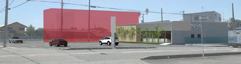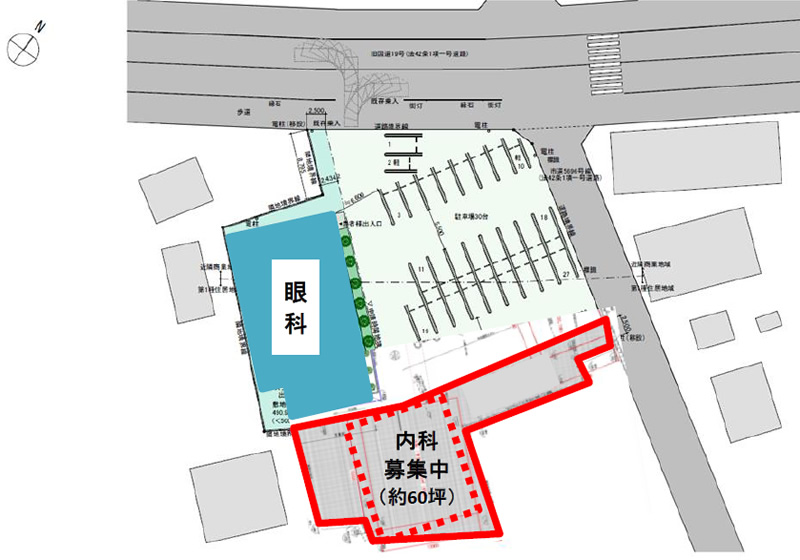周辺住民の生活動線上で、視認性抜群の医療モール案件。
